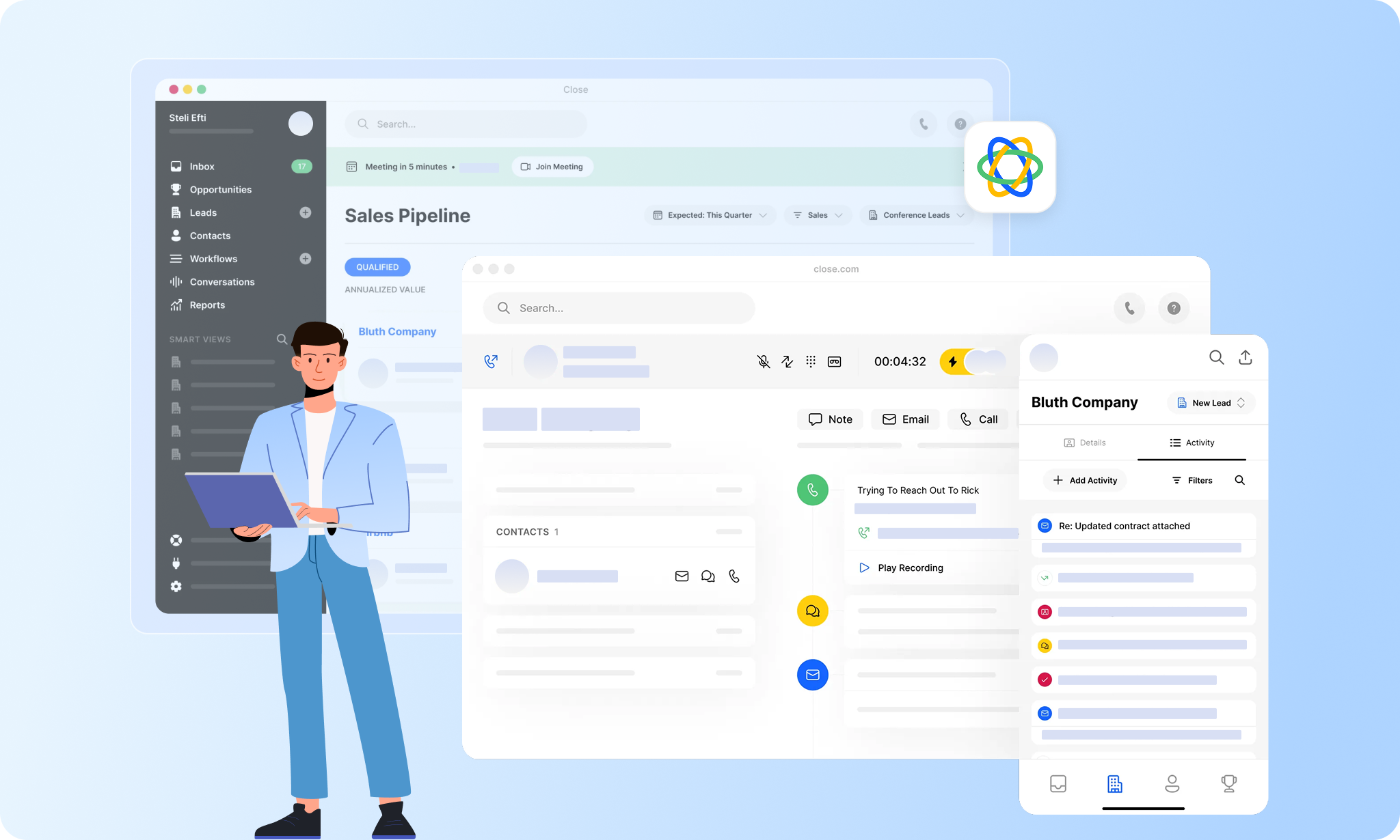 Close automates key sales tasks, reducing the manual workload and increasing efficiency.